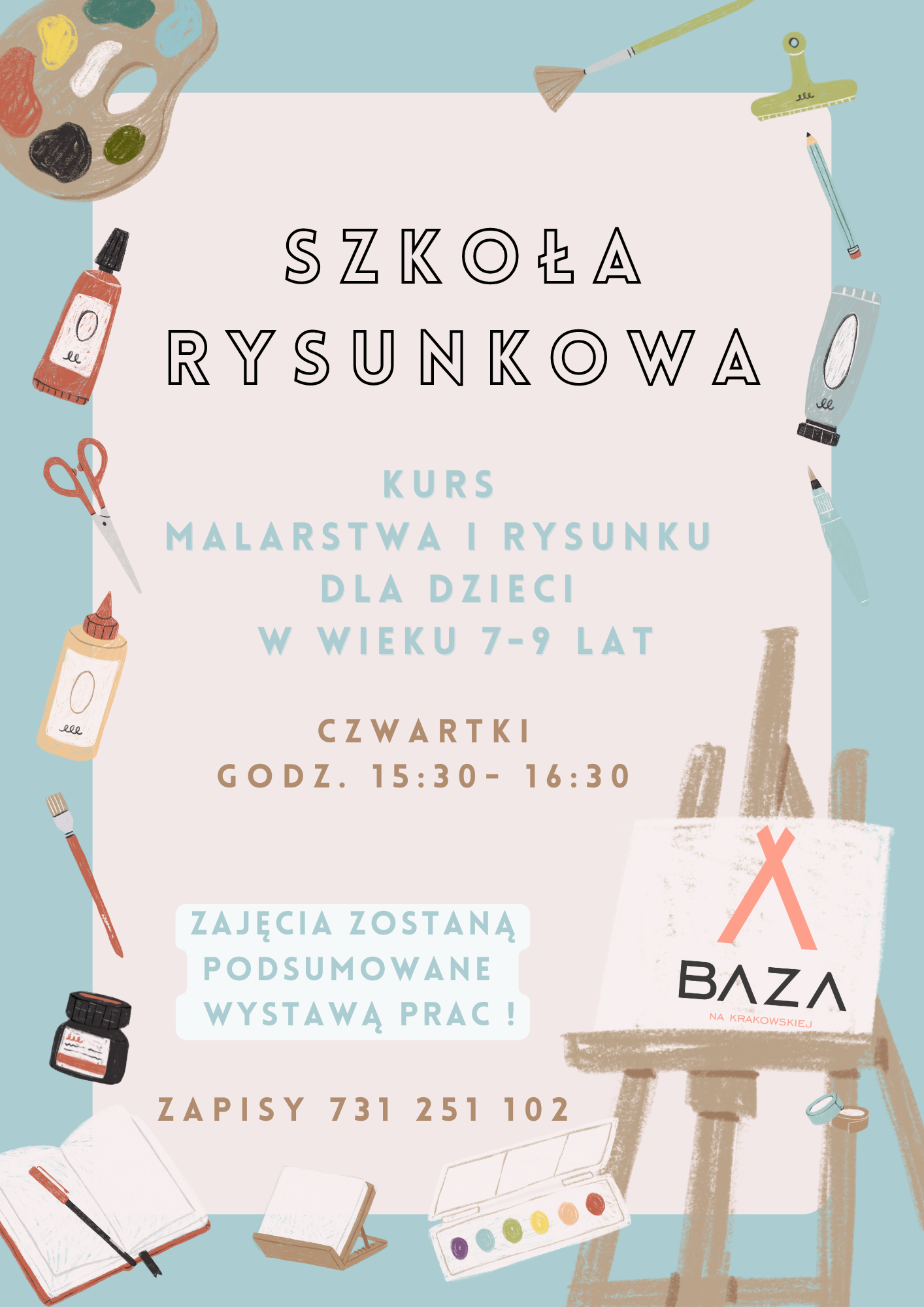 Zajęcia zostaną zwieńczone wystawą prac w podsumowującą sezon artystyczny BAZY.
